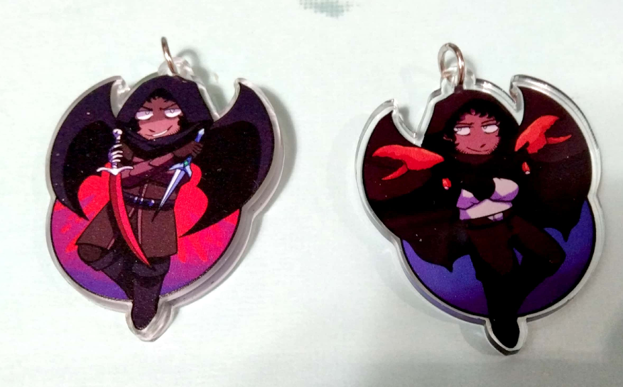 Clear acrylic charm of Artemis Entreri from the LoD series. Approximately 2 inch charm with silver jump ring and 25mm silver split ring.